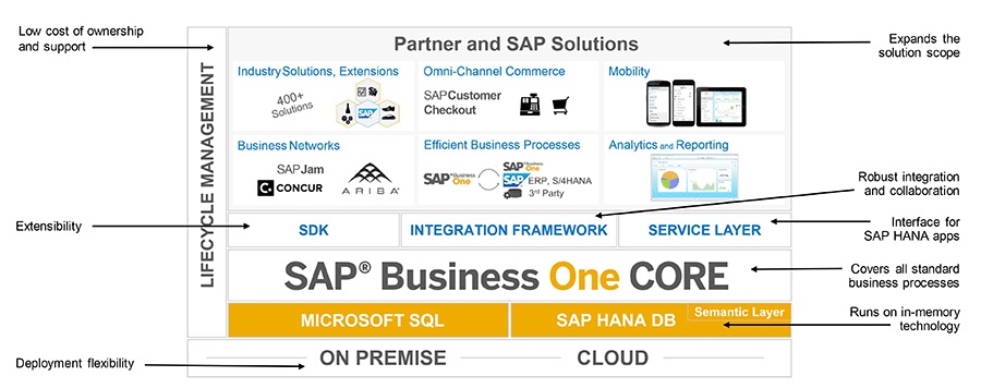 Esta solución es una potente herramienta gerencial ERP que integra y centraliza todas las funciones del Sistema administrativo incluyendo todas las funciones importantes para las empresas. SAP Business One provee a los gerentes con acceso a información crítica en tiempo real, entregando herramientas fundamentales para la toma rápida de decisiones importantes para ayuda a la reacción y al crecimiento inmediato de su compañía.
